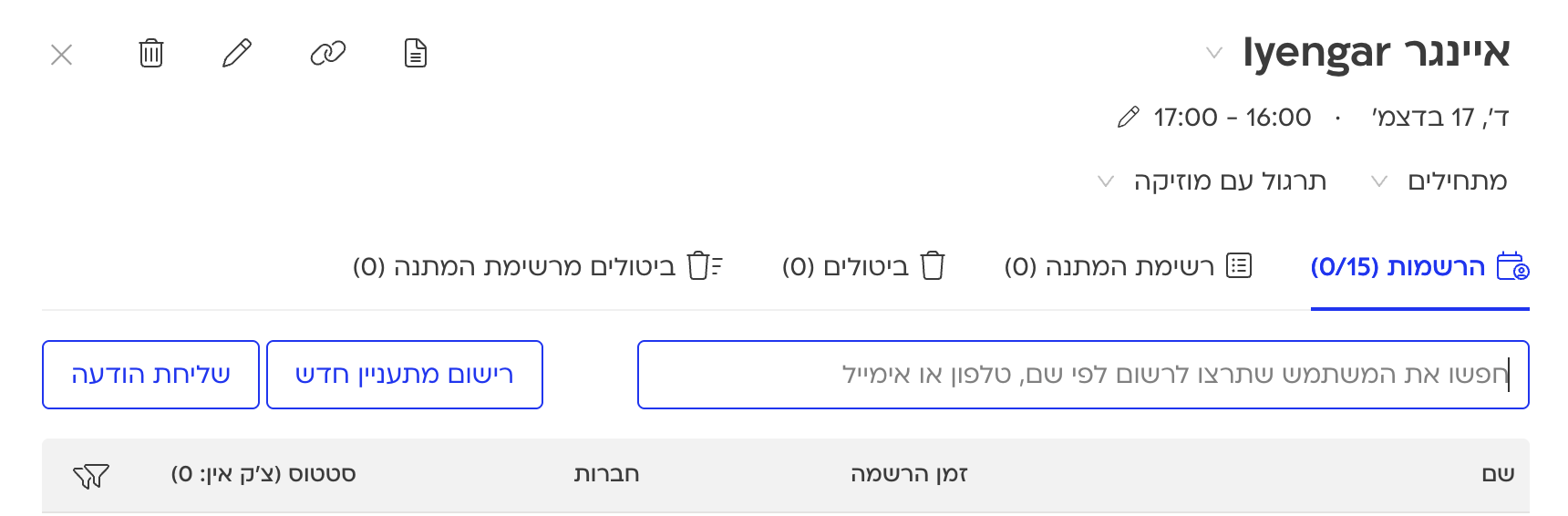 ברגע שהגדרתם את המפגש כמפגש ניסיון, המתעניין יכול להירשם בקלות - רוצים לדעת איך? יש לכם מספר אפשרויות: שליחת קישור ללוח השיעורים כולו, או ישירות למפגש הספציפי.