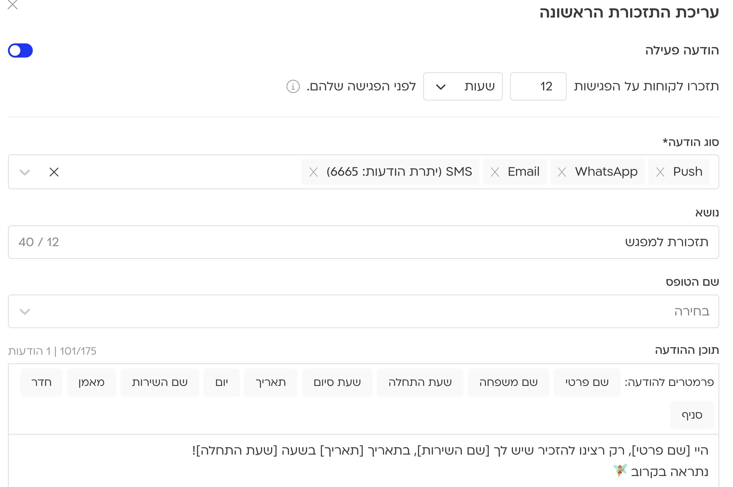 חדש! תזכורת בניסוח אישי למפגשים 💬